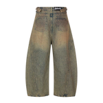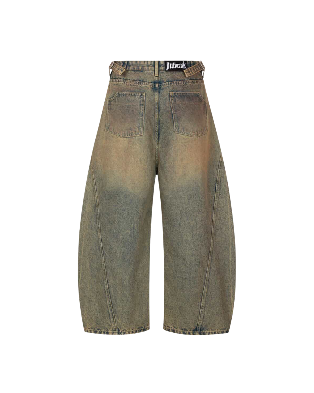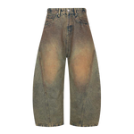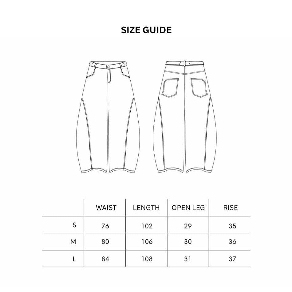 The Acid Washed Curved Wide Leg Jeans feature a sculpted wide-leg silhouette designed to create volume while maintaining a clean waistline. The curved construction adds subtle architectural shape, allowing the denim to move naturally with the body.